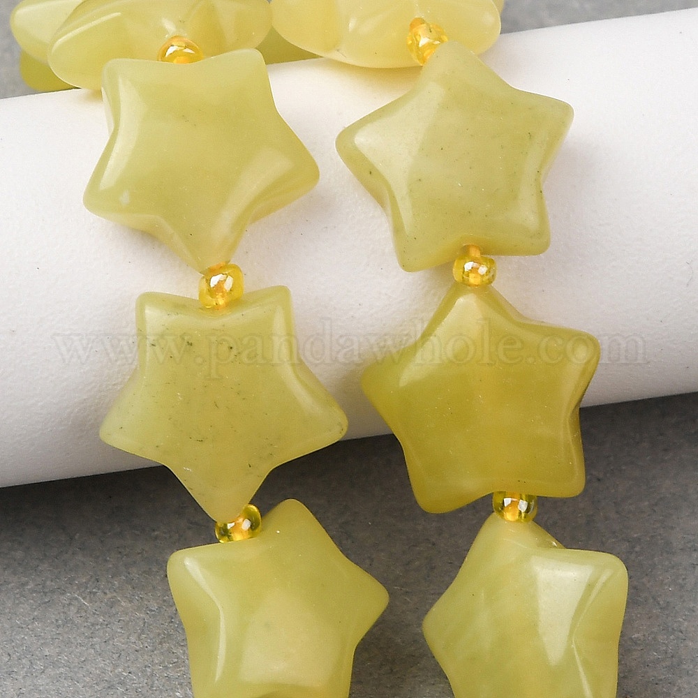 Натуральные нефритовые бусины, цвет лимона , звезда, с бисером