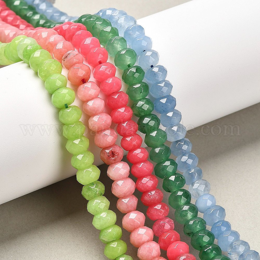 Натурального белого нефрита шарики Gemstone, разноцветные, окрашенные, граненые, шайба, 8x5 мм, отверстие : 1.2 мм, около 77 шт / нитка, 15.5 дюйм