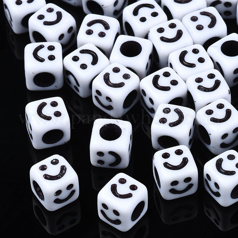 Непрозрачные акриловые бусины, куб с улыбающимся лицом