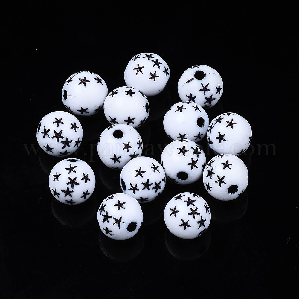 Непрозрачные акриловые бусины, ремесла стиль, круглый с черной звездой