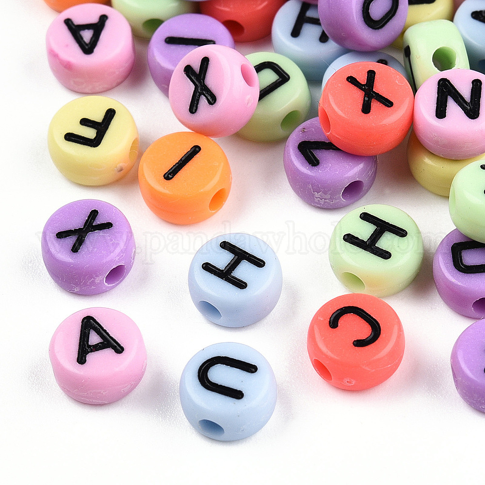 • (52) Непрозрачная лаванда Непрозрачные акриловые бусины, плоский круглый с черной буквой, разноцветные, 7x4 мм, отверстие : 1.8 мм, Около 3600 шт / 500 г