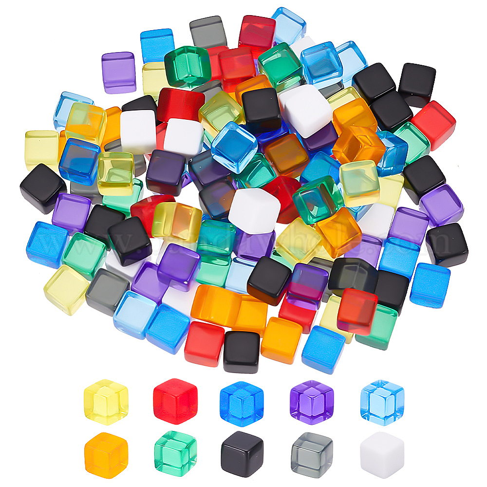 140 шт 10 цвета непрозрачные и прозрачные акриловые бусины, без отверстия , кубические