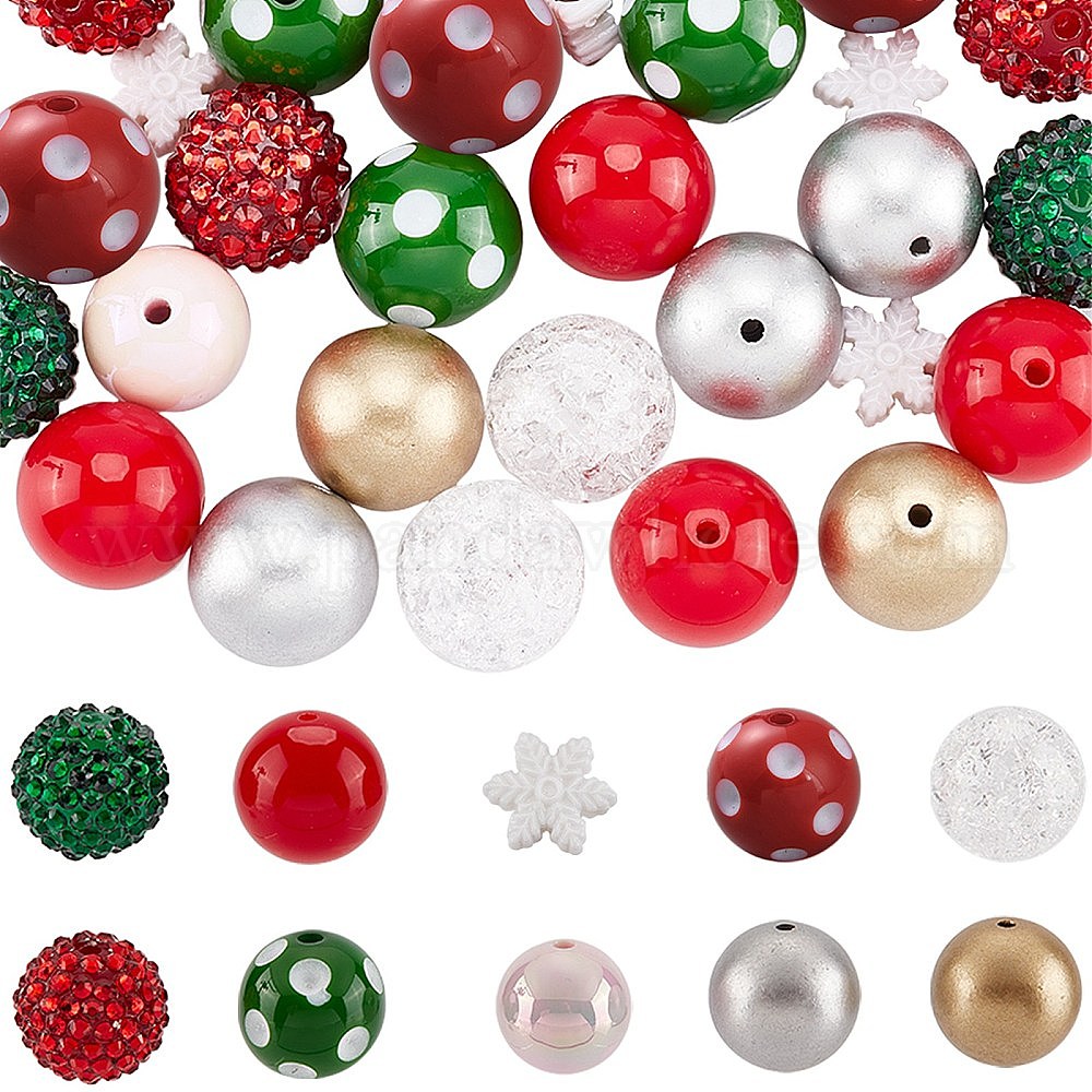 50шт 10 стиль рождественская тема акриловые бусины, cmолой горный хрусталь, круглый и снежинка