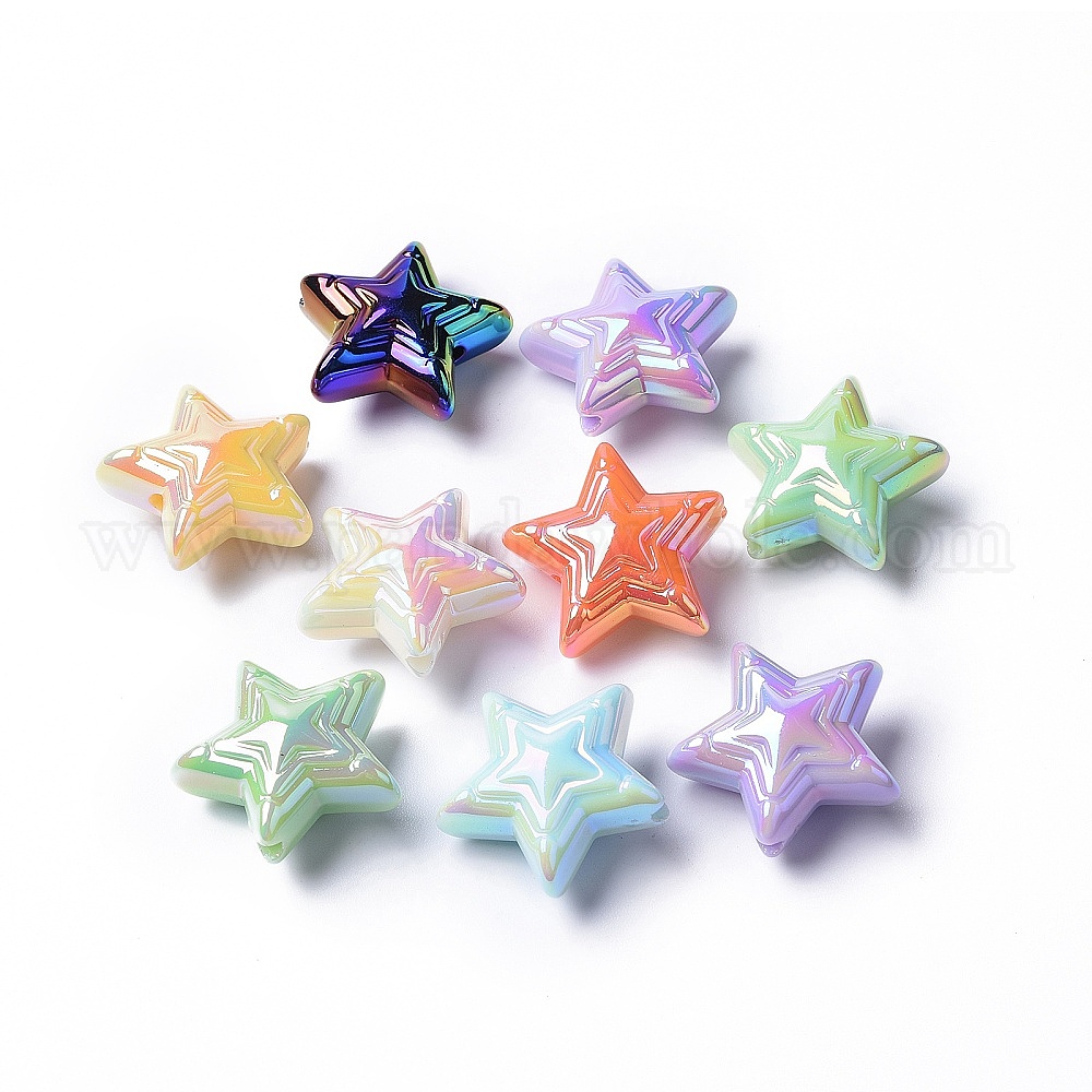 Непрозрачные акриловые бусины, с покрытием AB цвета, звезда
