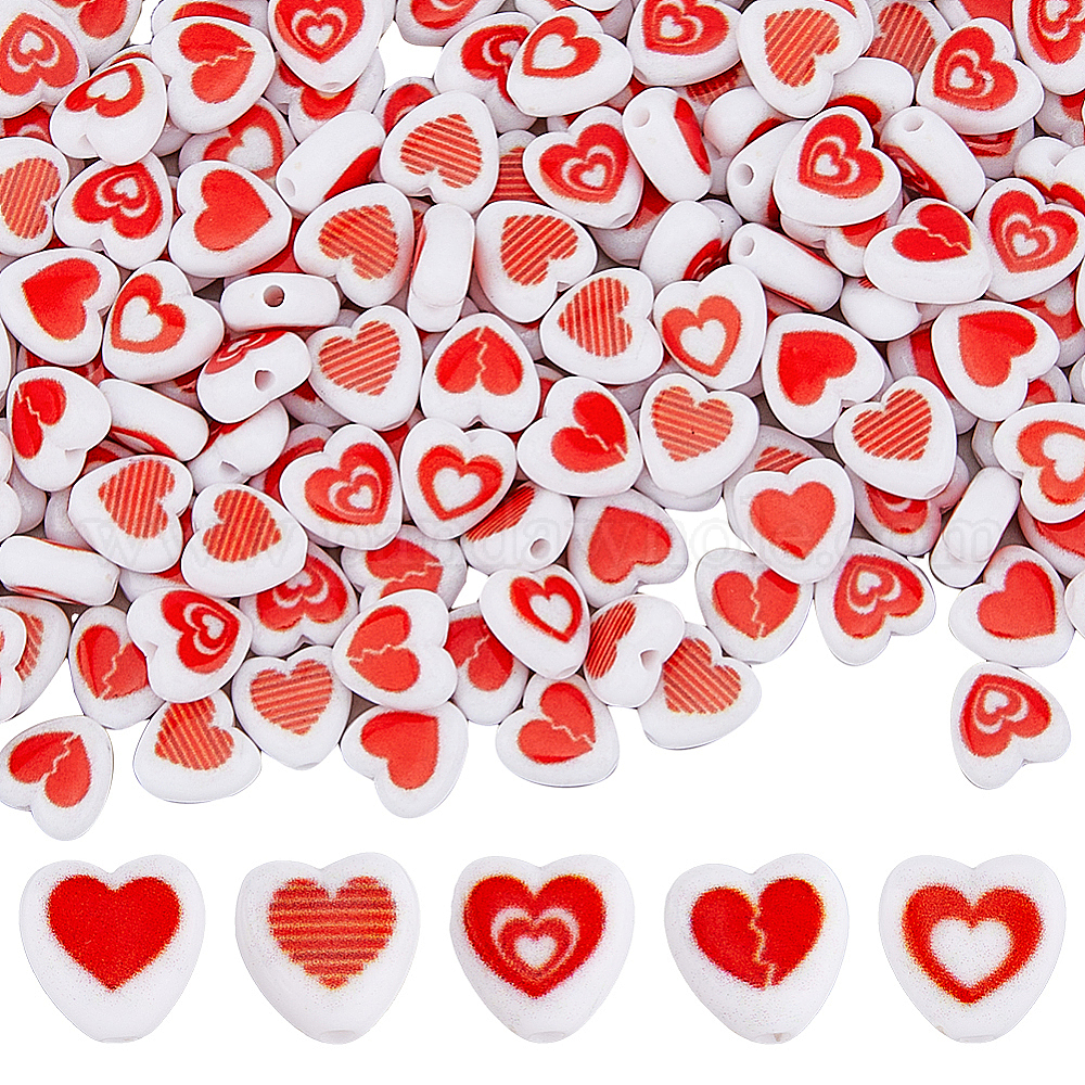 250 шт 5 стили непрозрачные бусины из акриловой эмали, сердце