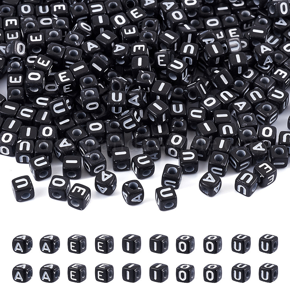 50g 5 стили непрозрачные акриловые бусины с горизонтальным отверстием, куб со смешанными буквами, черные и белые