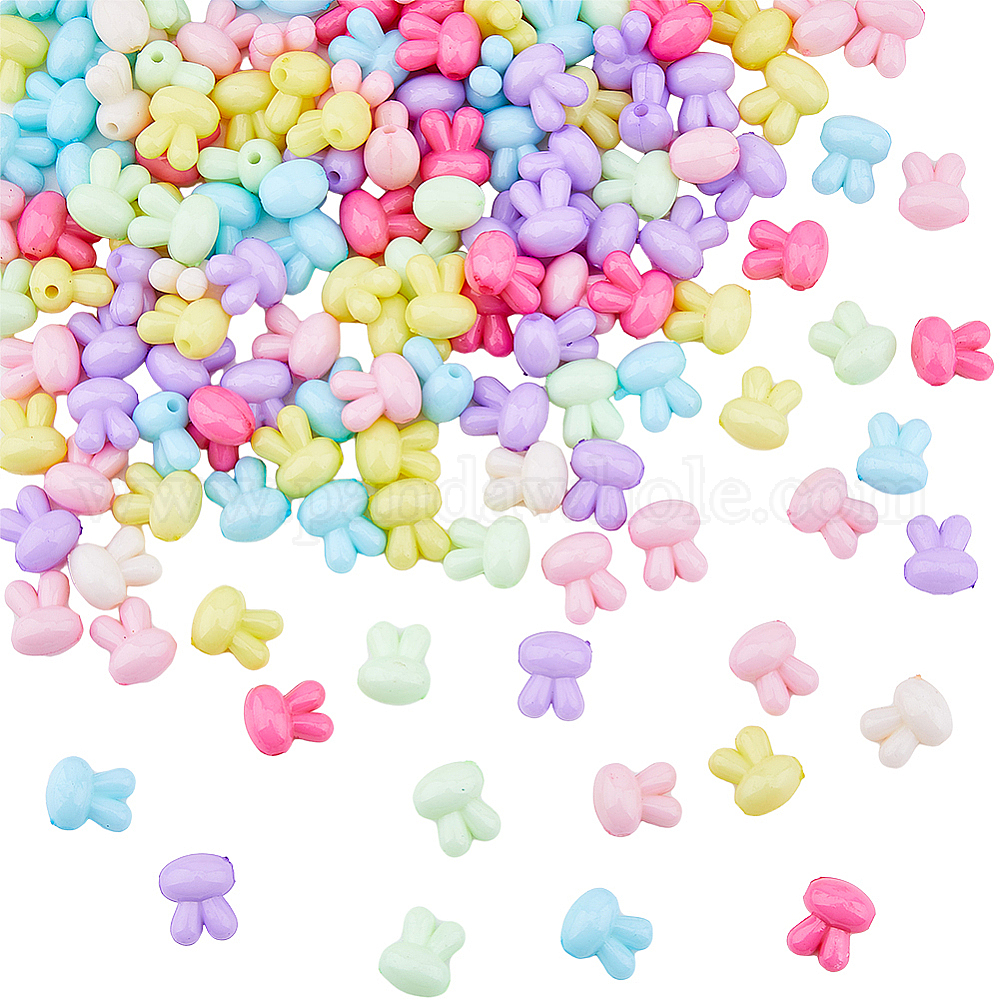 150 шт. непрозрачные однотонные акриловые бусины в виде кролика, кролика головы