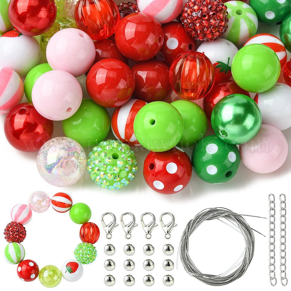 DIY браслет из жевательной резинки, подвеска, набор для изготовления украшений на клубничную тему, включая акриловые и железные бусины, сплав застежка, концевые цепи, провод