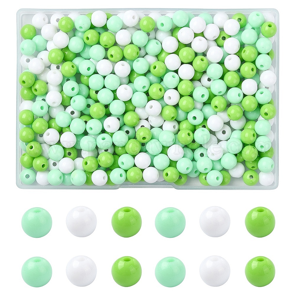 • Зеленый газон 300 шт 3 цвета непрозрачные акриловые бусины, круглые, зеленый газон, 8x7 мм, отверстие : 2 мм, 100 шт / цвет