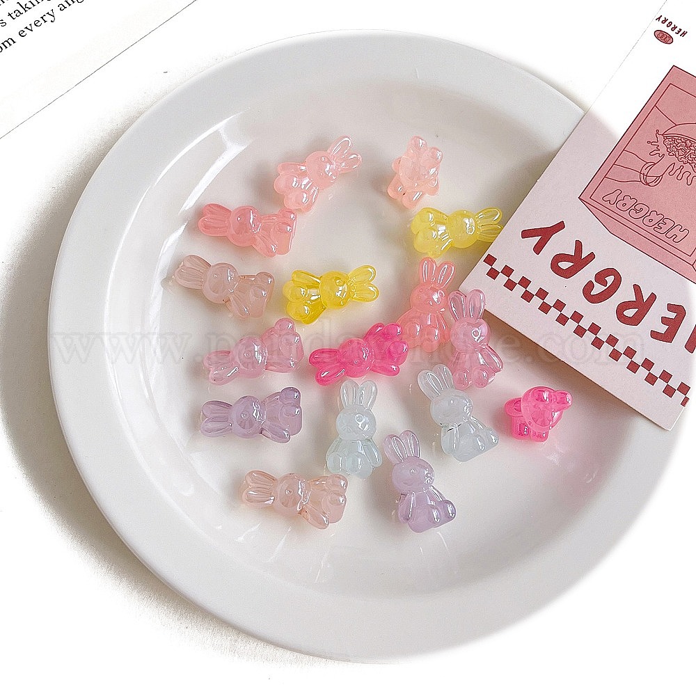 • (52) Непрозрачная лаванда Непрозрачные акриловые бусины, кролик, разноцветные, 24.7x14.6x11.7 мм, отверстие : 3 мм