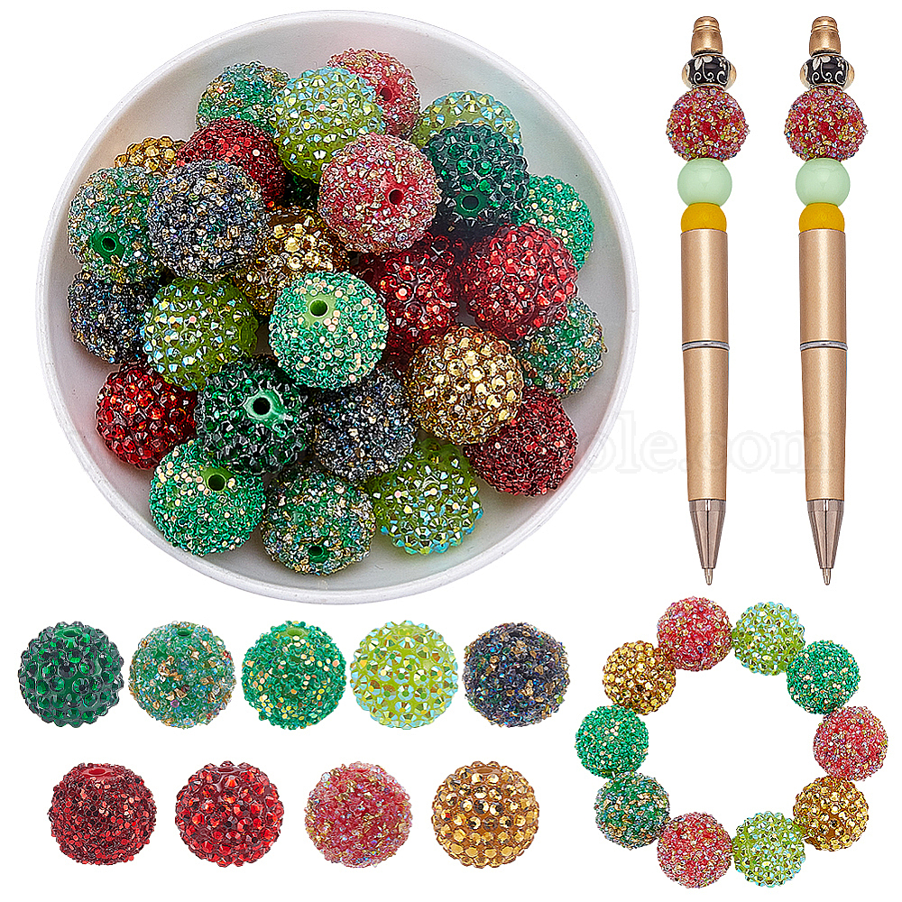 36 шт 9 стили акриловые бусины, блеск бисера, с блестками / пайеткой, круглые (031JHK)