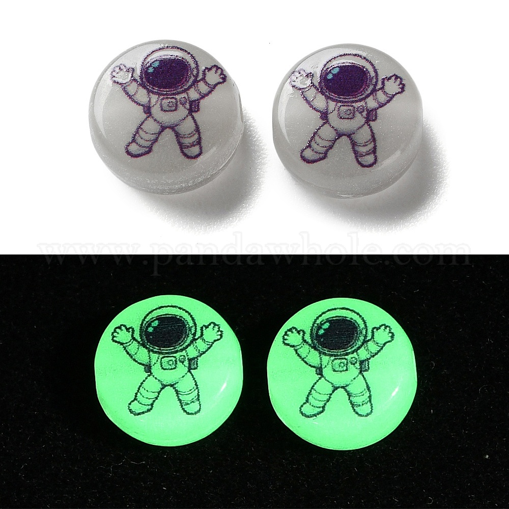 Светящиеся акриловые бусины, плоский раунд с космонавтом, светится в темноте