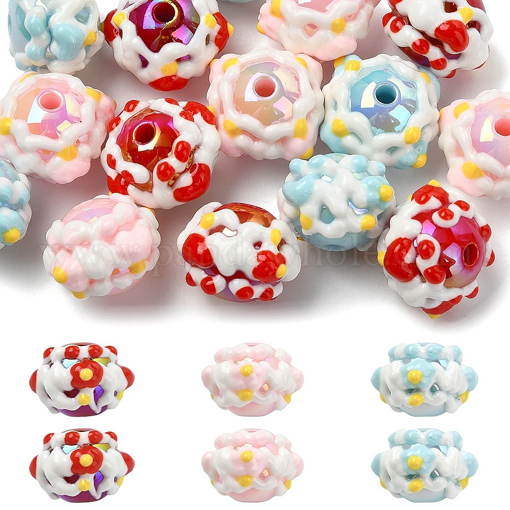 15 шт 3 цвета непрозрачные акриловые бусины, с эмалью, бусины ручной работы, круглые