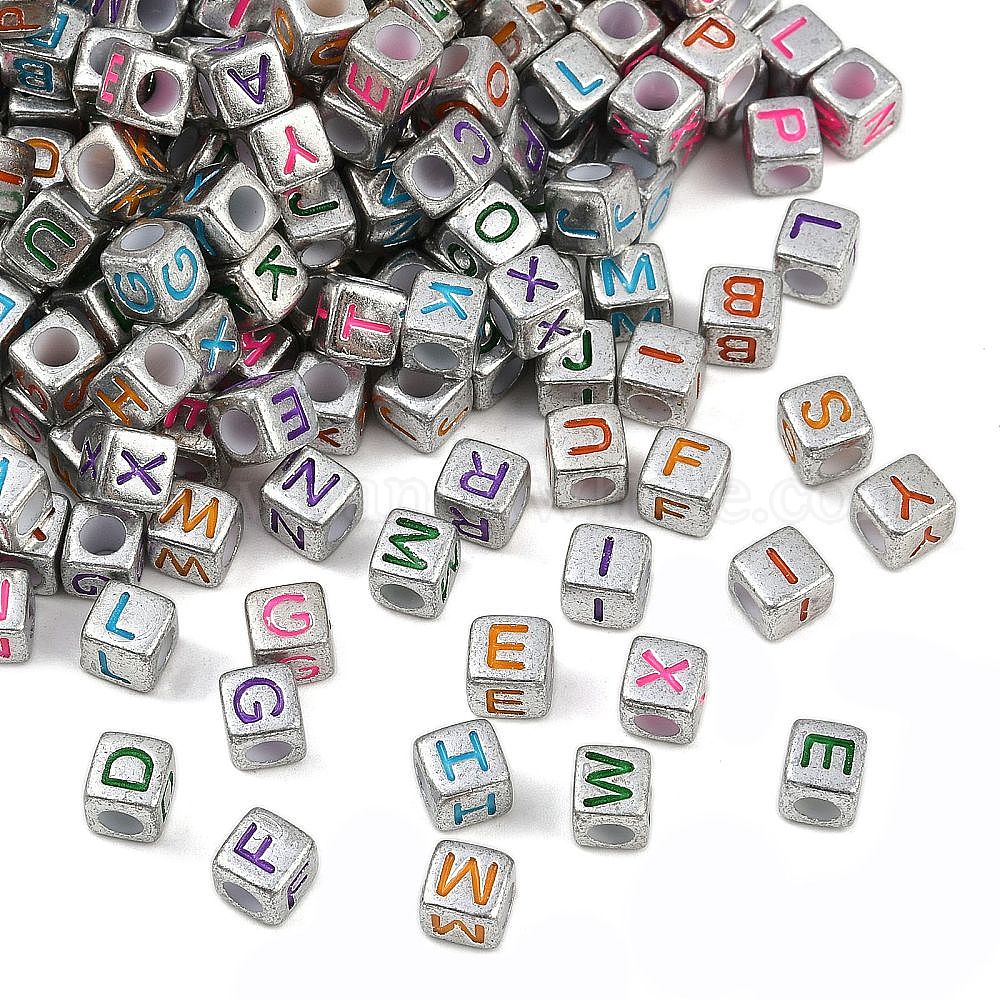 Непрозрачные акриловые бусины, куб с письмом