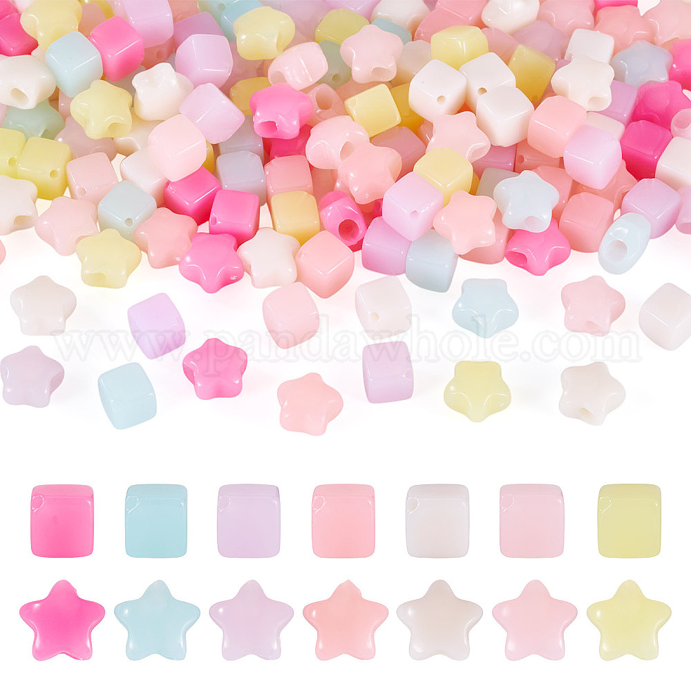 200 шт 2 стили непрозрачные акриловые бусины, звезда и куб