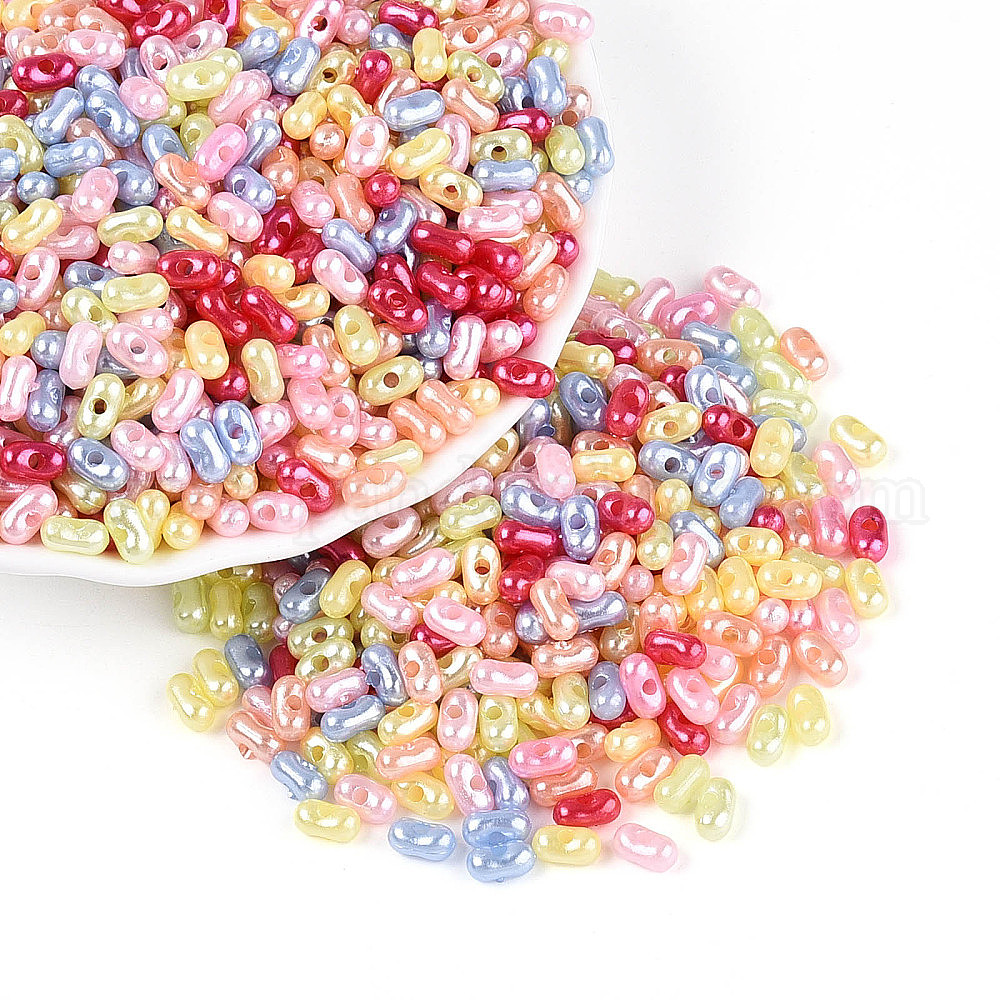 • (52) Непрозрачная лаванда Перламутровые непрозрачные акриловые бусины, арахис, разноцветные, 6.5x3.5x3 мм, отверстие : 1.5 мм, Около 10640 шт / 500 г