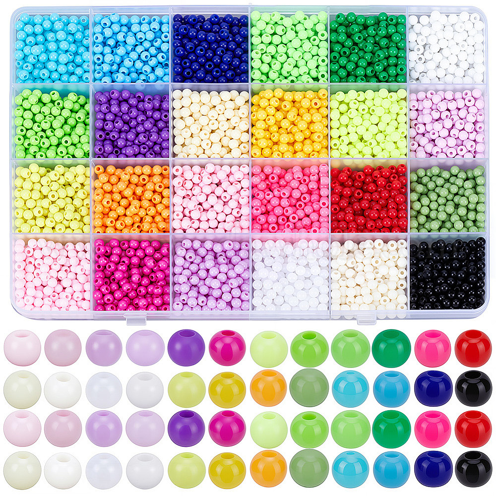 непрозрачные акриловые бусины: 6мм, отверстие : 1 мм, 65шт;