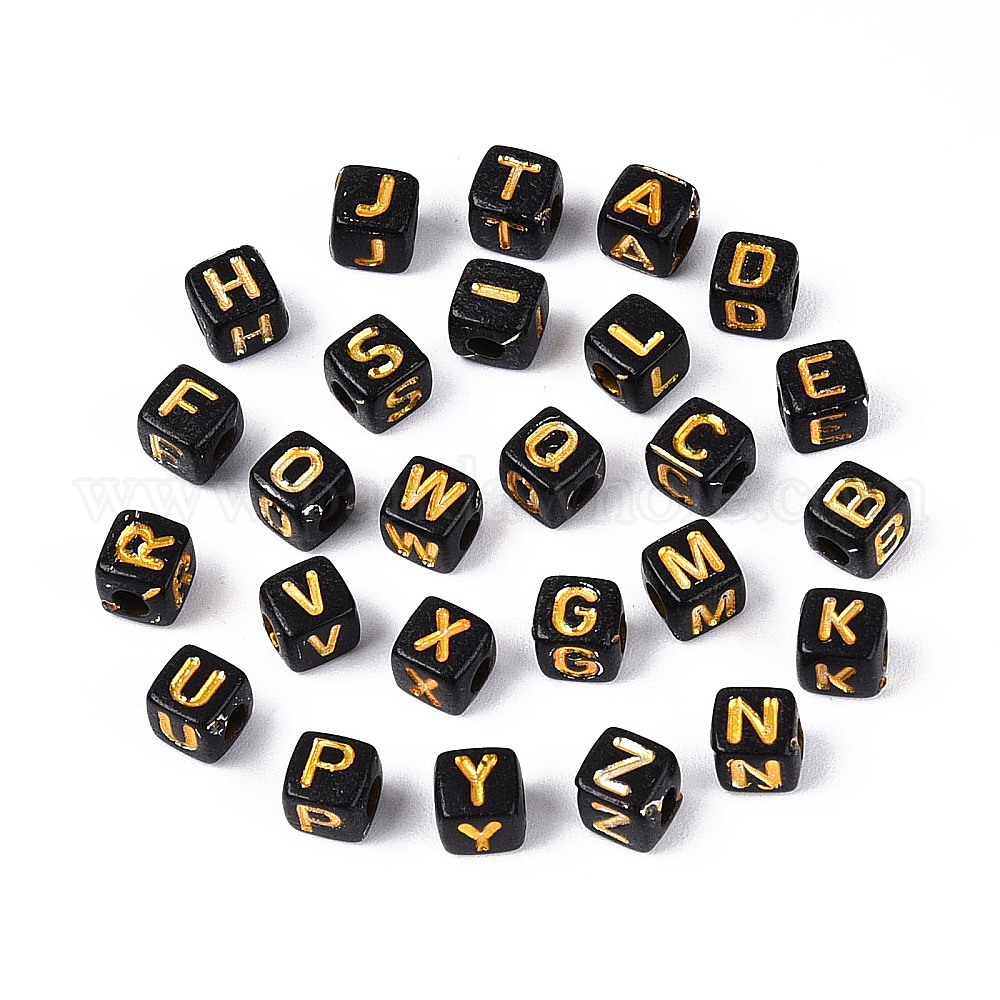 • Letter A Непрозрачные акриловые бусины, золотой металл обвитыми, куб с письмом, чёрные, буква a, 4.5~5x4.5~5x4.5~5 мм, отверстие : 2 мм, Около 6250 шт / 500 г