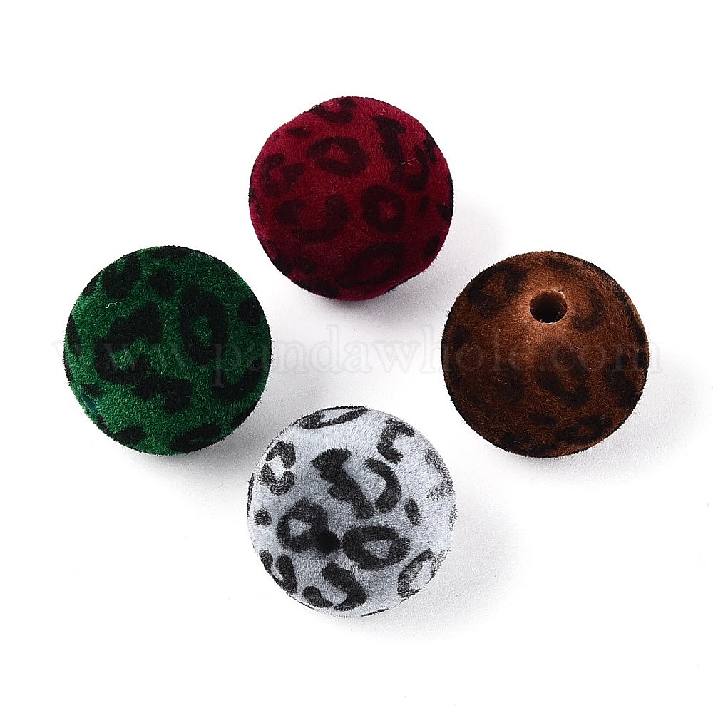 Флокированные непрозрачные акриловые бусины, круглый с леопардовым принтом