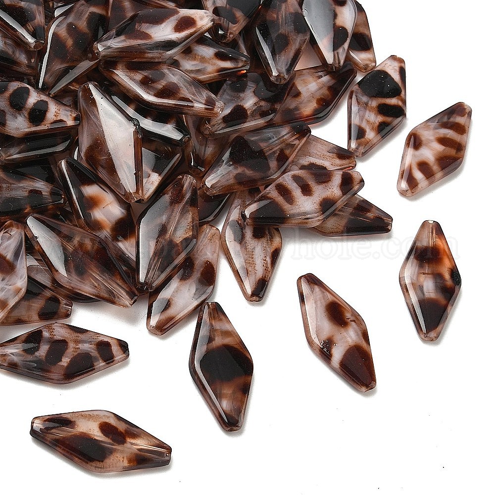 • Кокосово-Коричневый Непрозрачные акриловые бусины, имитирующие леопардовый принт, ромб, два тона, с блеском порошок, кокосового коричневый, 31x14.5x4.5 мм, отверстие : 1.8 мм, 460 шт / 500 г