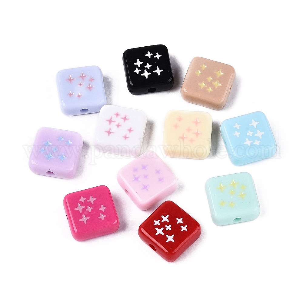 Акриловые бусины с непрозрачной эмалью, квадрат и звезда