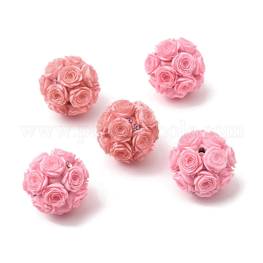 Непрозрачные акриловые бусины, стразы и смоляные бусины, круглый с цветком розы