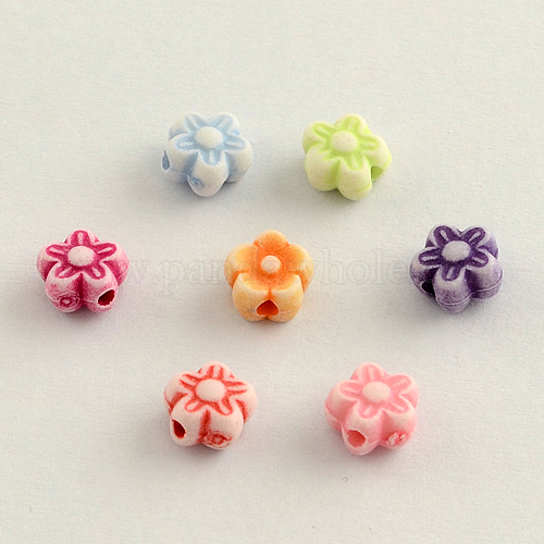 • (52) Непрозрачная лаванда Ремесло стиль акриловые бусины, цветок, разноцветные, 7x4 мм, Отверстие : 2 мм , около 4000 шт / 500 г