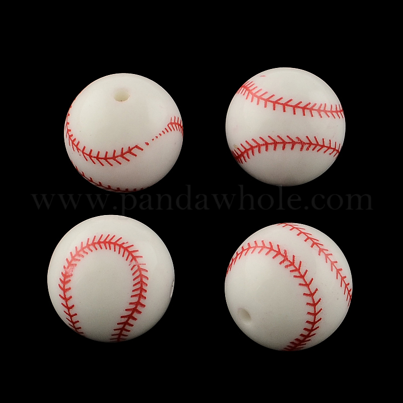 Непрозрачные акриловые круглые бусины, бейсбол, 20 мм, отверстие : 2.5 мм (00GZXX)