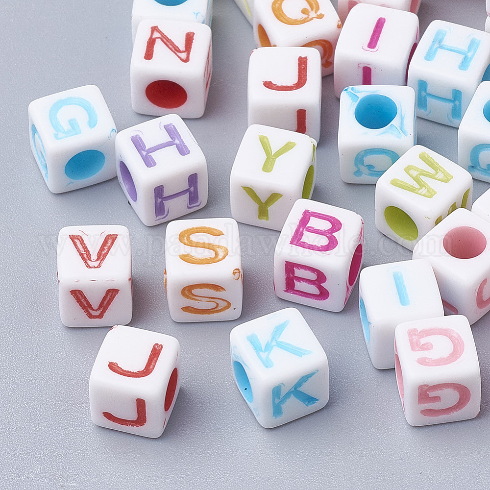 Ремесло стиль акриловые бусины, горизонтальное отверстие, куб с начальной буквой