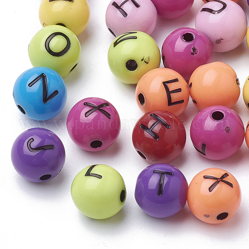 Ремесло стиль акриловые бусины, горизонтальное отверстие, раунд с начальной буквой