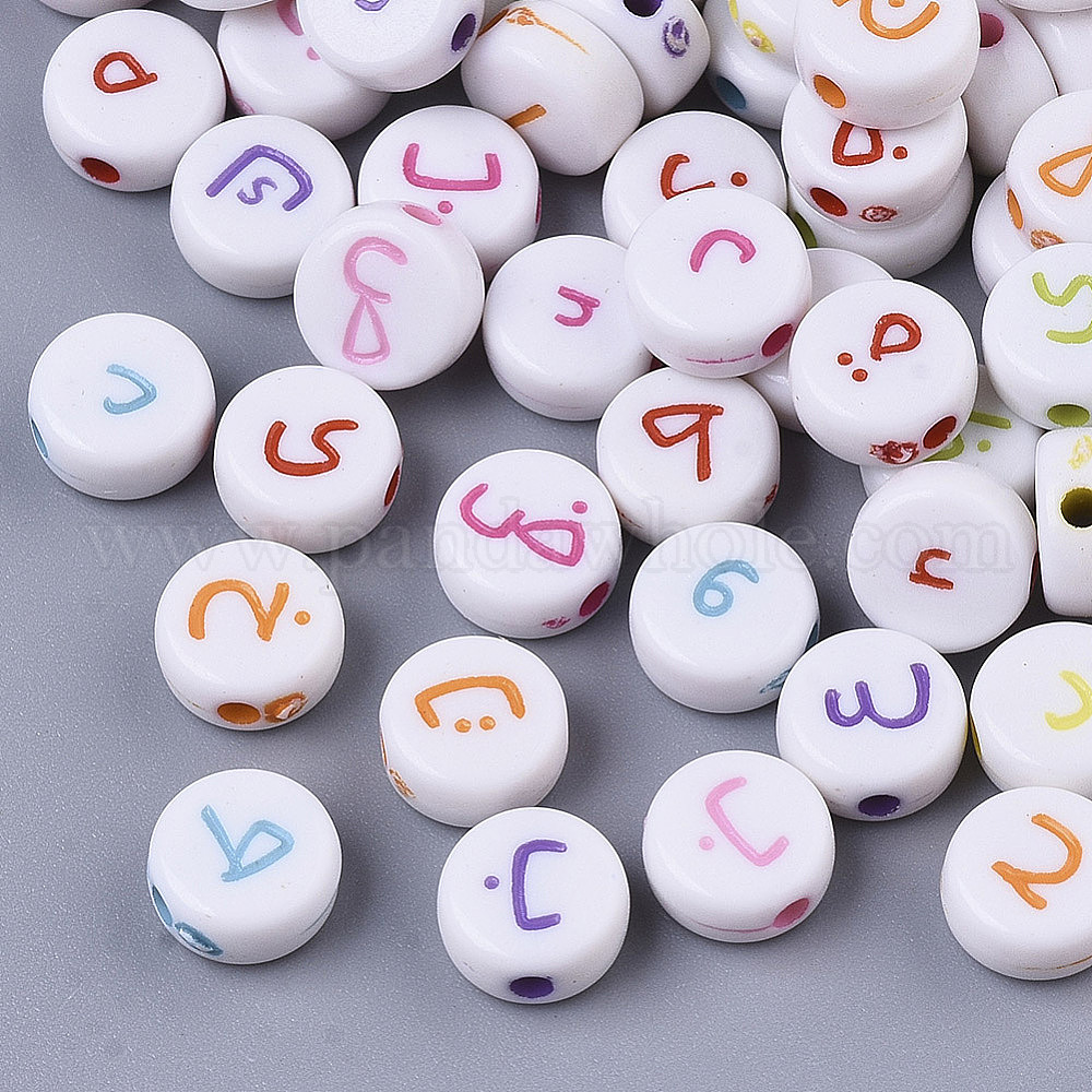 • (52) Непрозрачная лаванда Непрозрачные акриловые бусины, случайные смешанные буквы, плоский круглый с арабской буквой, разноцветные, 7x3.5 мм, отверстие : 1.2 мм, Около 3700 шт / 500 г