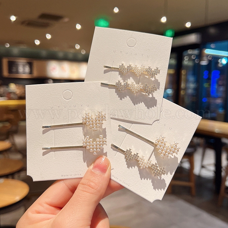2шт. шпильки для волос со стразами, с имитацией жемчужина бисера, сердце