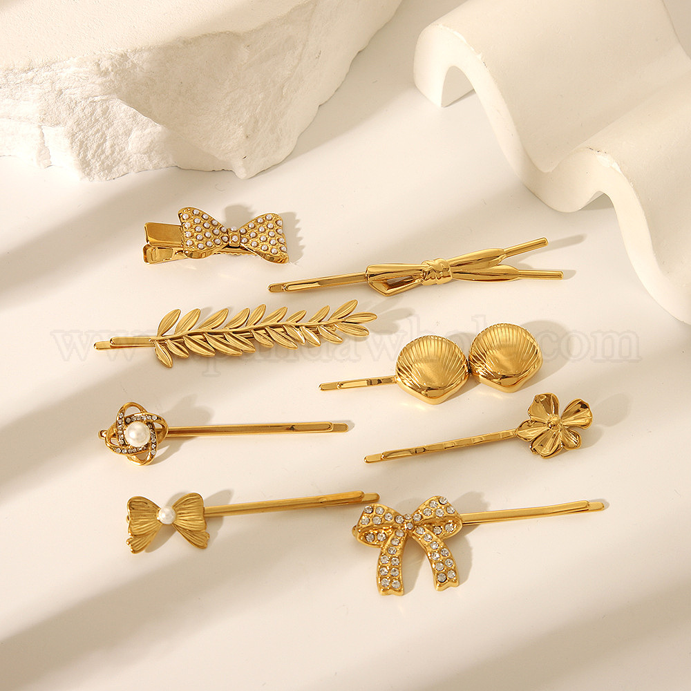 Стильная 304 заколка для волос из нержавеющей стали, реальный 18 k позолоченный