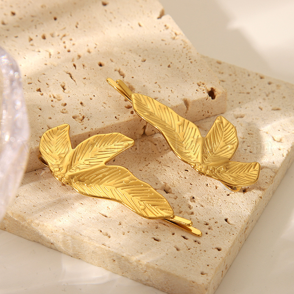 Модная 304 заколка-невидимка из нержавеющей стали в форме листа для женщин, реальный 18 k позолоченный