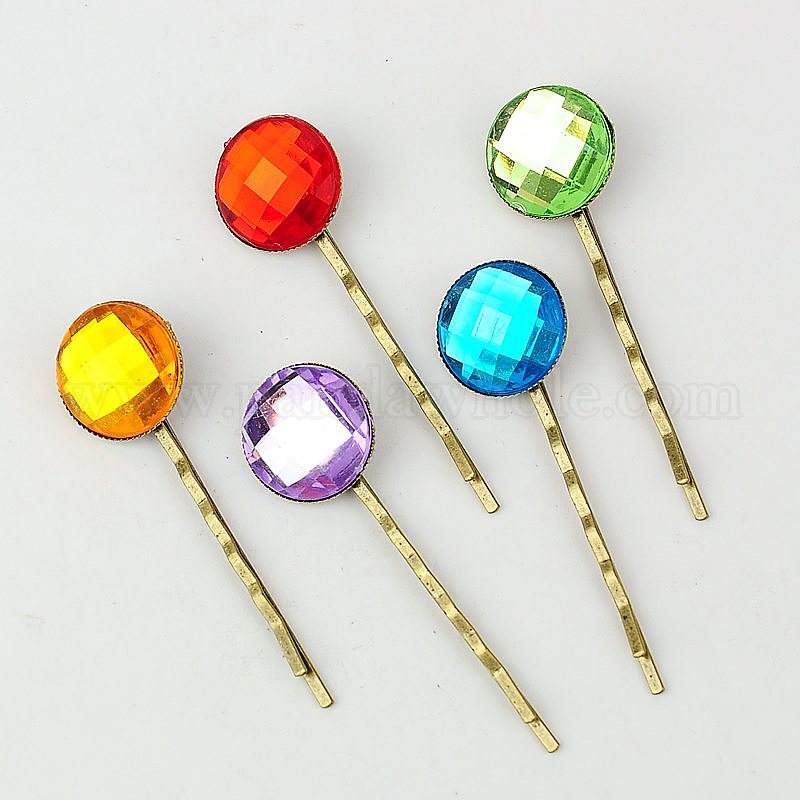 Железа заколки для волос, с акриловыми стразами кабошонами, 63 мм