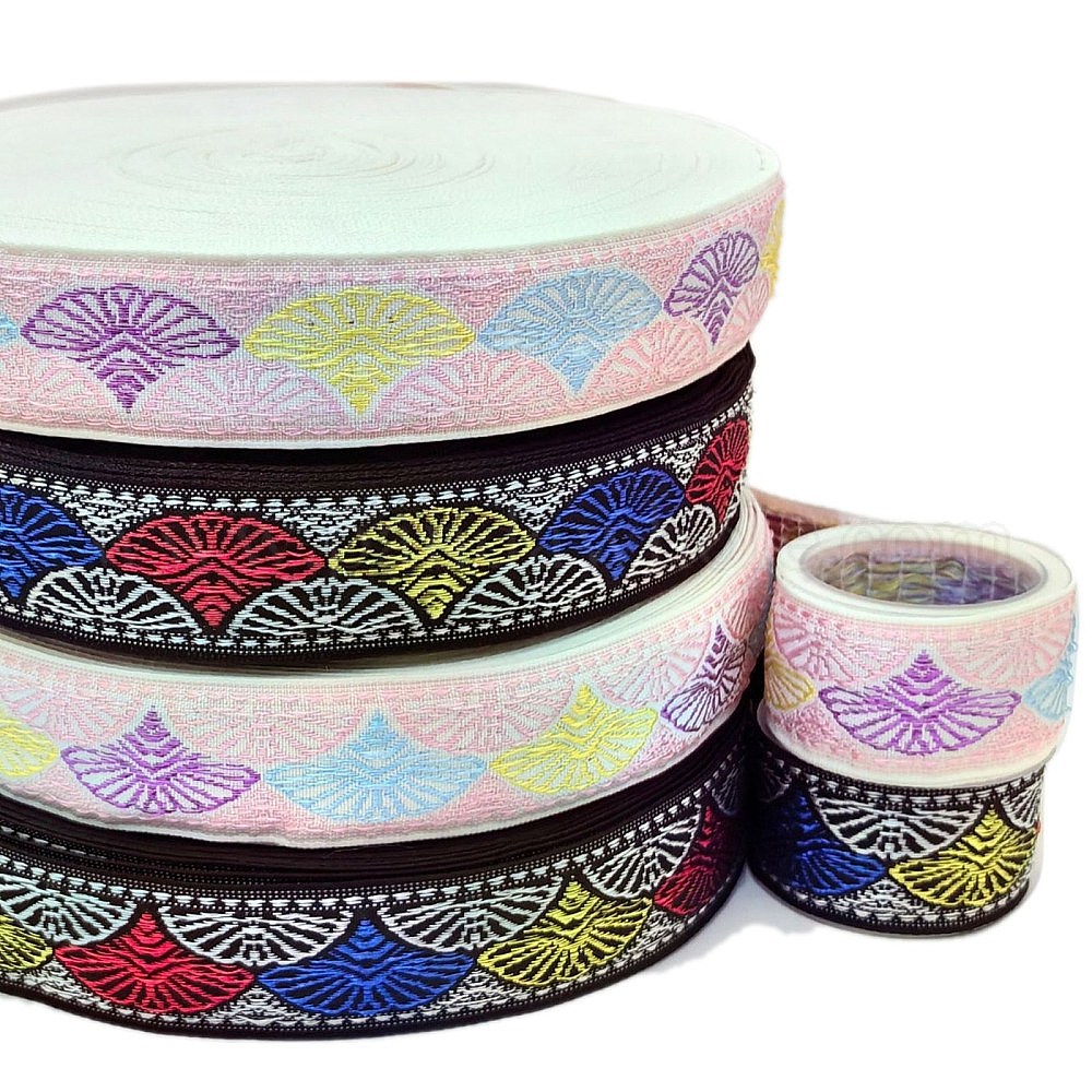 50 ярдов вышитой в этническом стиле нейлоновой жаккардовой ленты в форме веера, для аксессуаров для костюмов для выступлений