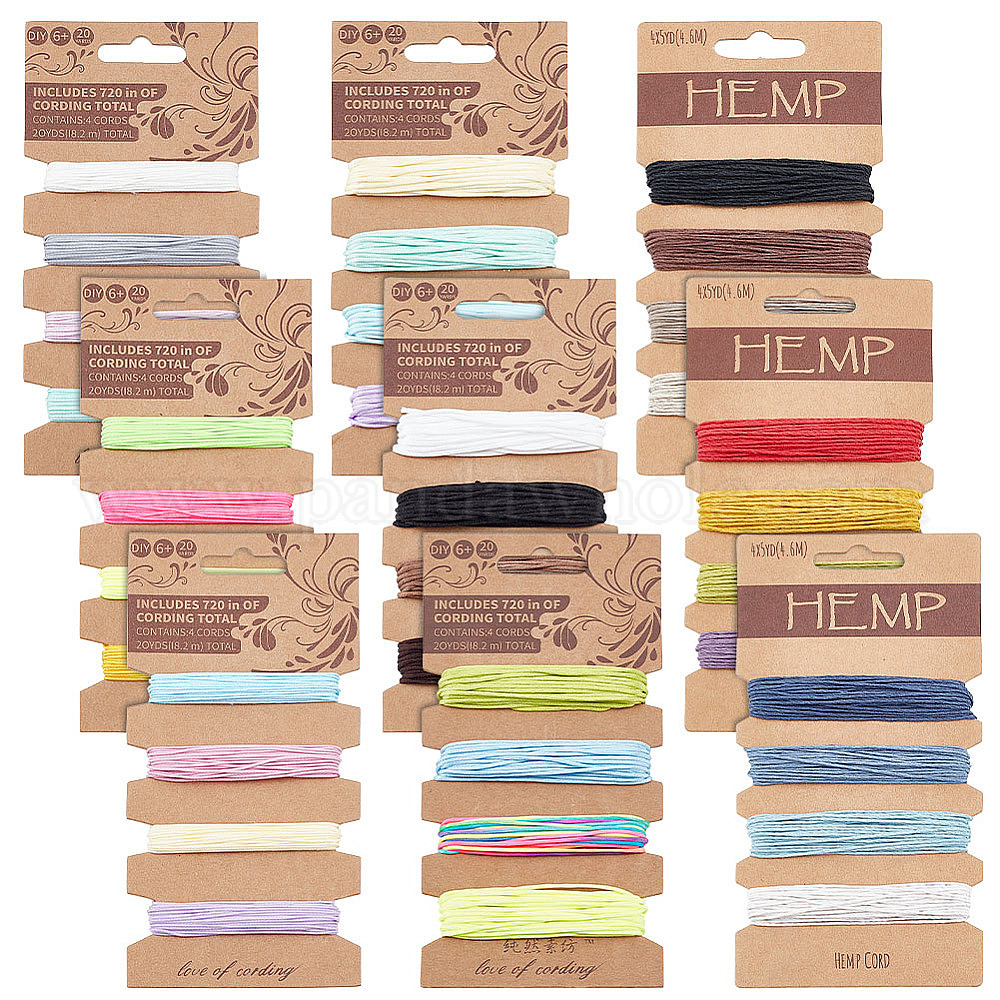 • (52) Непрозрачная лаванда 9 наборы нейлоновых ниток для карточек, в том числе китайский шнур для завязывания узлов и атласный шнур с плетеным хвостом, для изготовления ювелирных изделий, разноцветные, 0.8~1.5 мм, 4 цвета/карта, 5 ярды / цвет