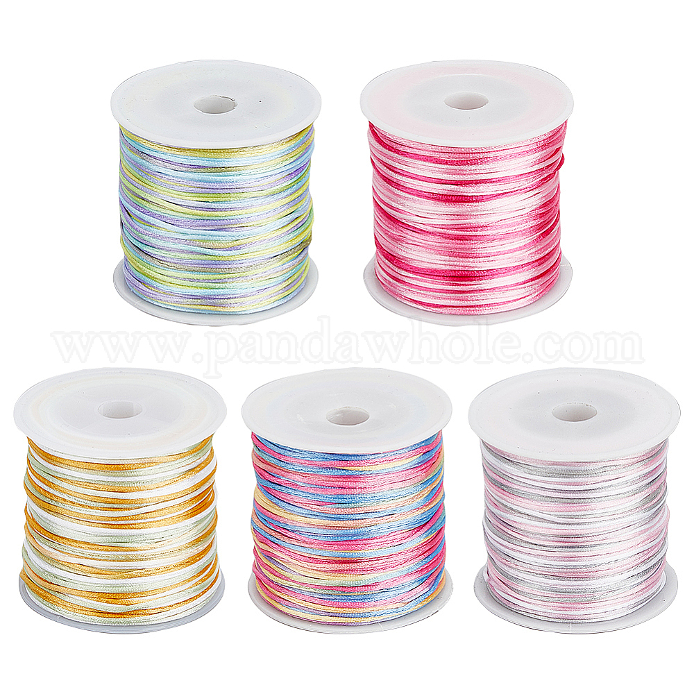 5 рулоны 5 цвета сегмент окрашенный нейлоновый шнур, гремучий атласный шнур, для изготовления ювелирных изделий DIY, Китайский узел (02HHEC)
