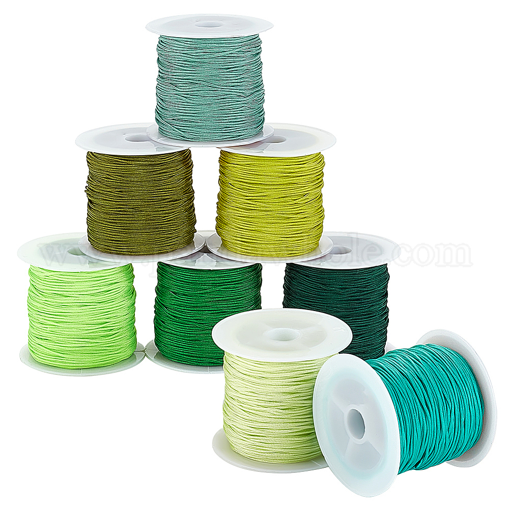 8 рулоны 8 цвета нейлоновая плетеная нить, шнур с китайским узлом, с катушкой, зеленая цветовая палитра (02PW9X)