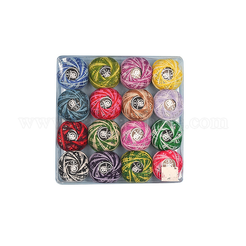 16 мотки 16 цвета сегментов, размер окрашенных 8 нитки для вязания крючком, Мерсеризованная хлопчатобумажная пряжа для ручного вязания кружев.