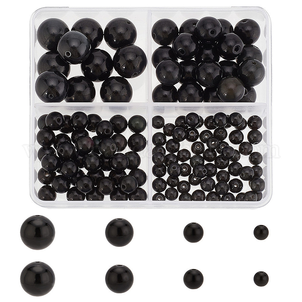 • Обсидиан 130шт 4 стиль натуральный обсидиан бусины нити, круглые, класс А, 4~10 мм, отверстие : 1 мм