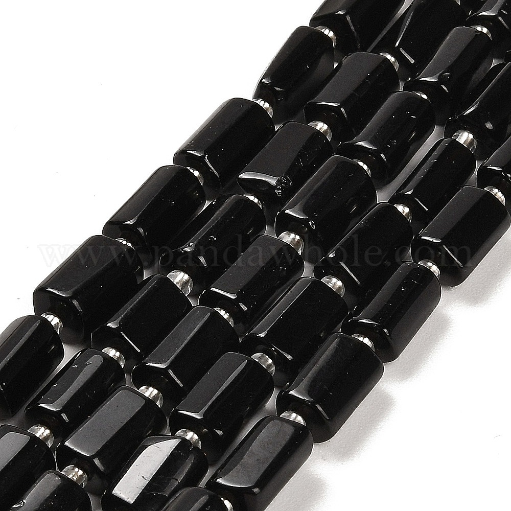 • Обсидиан Природные обсидиана бисер нитей, с бисером, граненые колонки, 9~11x6~7.5x6~7.5 мм, отверстие : 1.2 мм, около 30 шт / нитка, 15.16~15.55 дюйм (38.5~39.5 см)