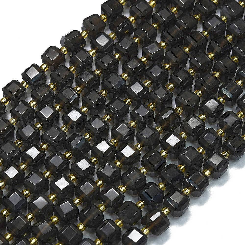 Натуральные ледяные обсидиановые бусинки, с бисером, граненый стол, вырезанный куб