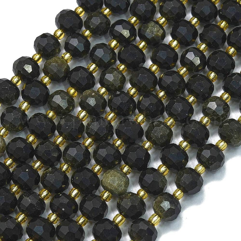 Естественный золотистый отлив обсидиан бисер пряди, с бисером, граненые, фонарь
