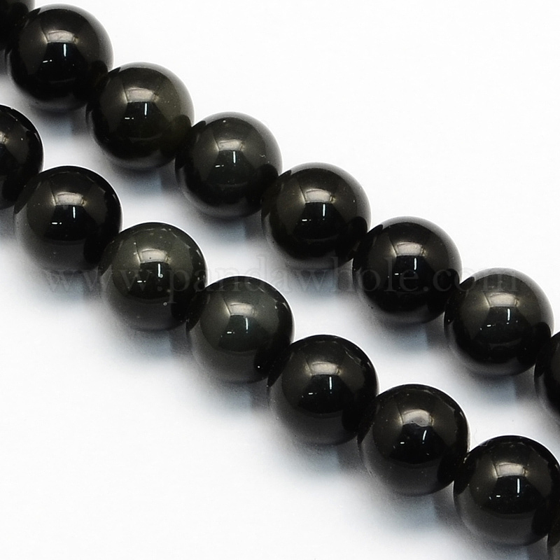 Природные обсидиана круглых бусин пряди