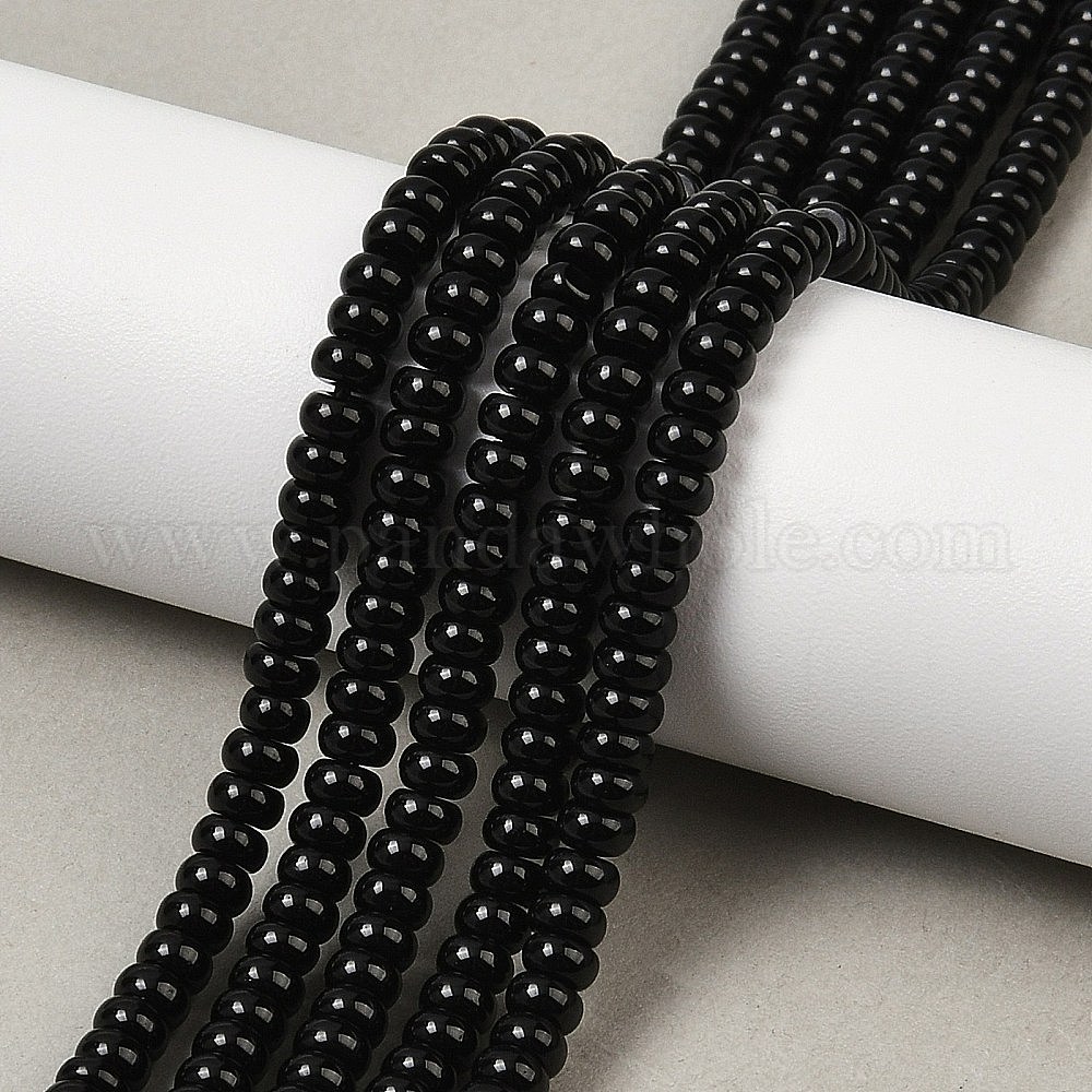 • Обсидиан Природные обсидиана бисер нитей, рондель, 4x2~2.5 мм, отверстие : 1 мм, около 164 шт / нитка, 15.04'' (38.2 см)