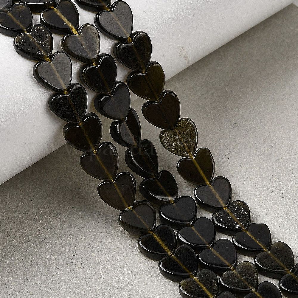 Естественный золотистый отлив обсидиан бисер пряди, сердце
