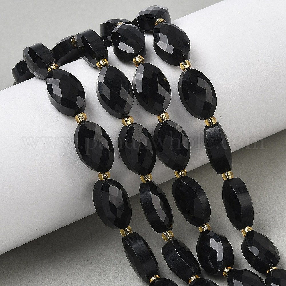 Природные обсидиана бисер нитей, граненые, лошадь форма глаз, с бисером