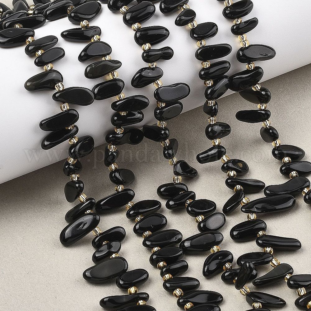 • Обсидиан Натуральный черный обсидиан бисер пряди, чип, Топ пробуренной, с бисером, 9~28x5~11x3~7 мм, отверстие : 1 мм, около 46~59 шт / нитка, 15.16~15.55'' (38.5~39.5 см)