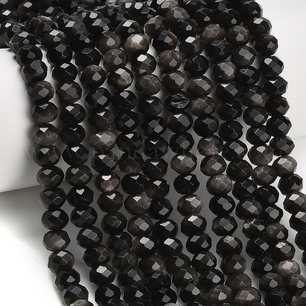 Бусы из натурального серебра обсидиан, рондель, граненые